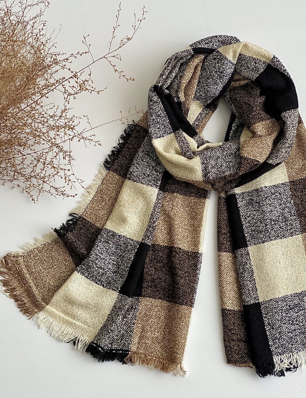 🧣چهارخونه همیشه انتخاب اول استایل پاییز بوده ✔️این شال موهر سبک با ۲ رنگ کرم و مشکی ✔️دور ریش هم هست که جذابترش کرده