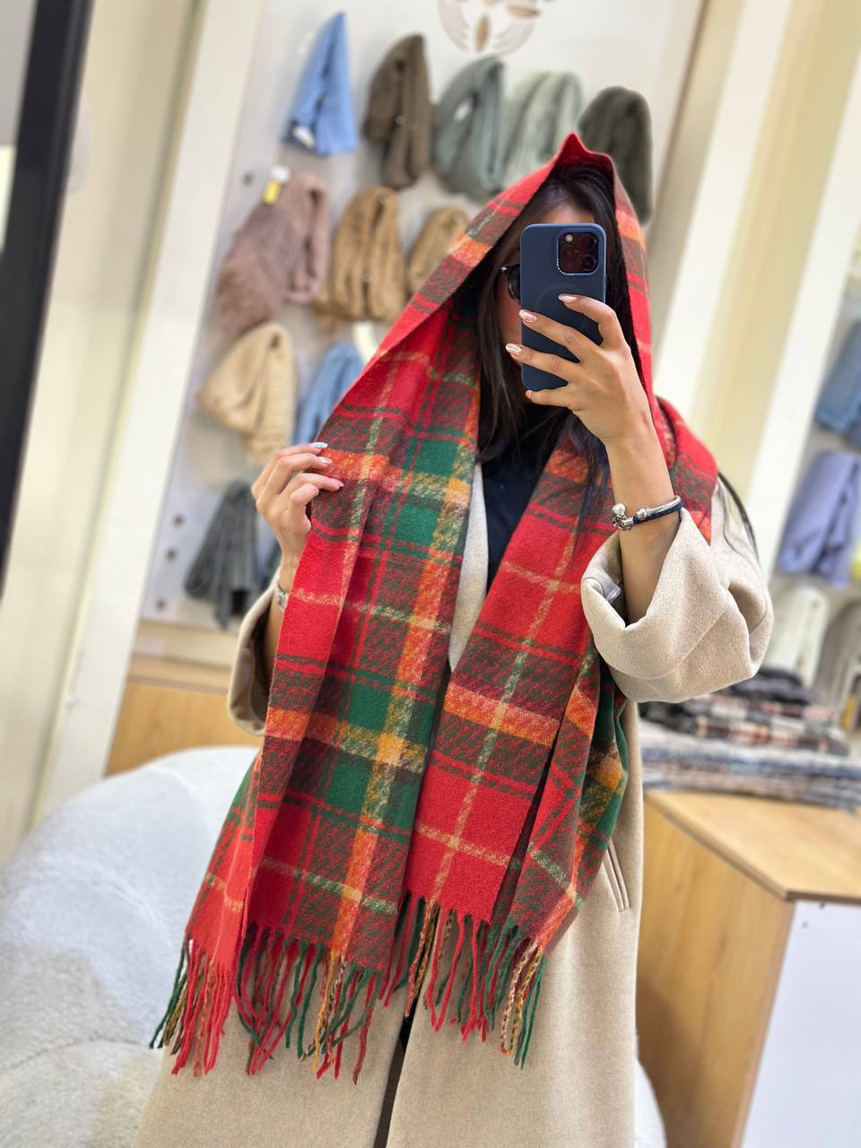 🧣شال موهر وارداتی با ترکیب رنگ زرشکی و سبز استایل یلدایی و کریسمسی فقط این شال رو میخواد تک رنگ با کیفیت بالا وارداتی ریشه های فیتیله ای خوووشگل